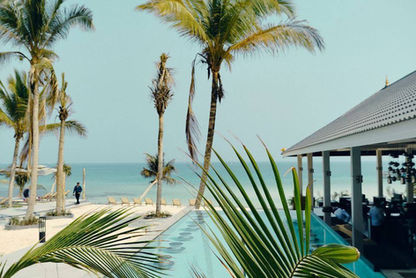 位置好,人气旺,房间紧邻海滩,房间有空调,大床,独立卫浴,热水,洗漱用品,烧水壶,拖鞋,大堂前面有游泳池